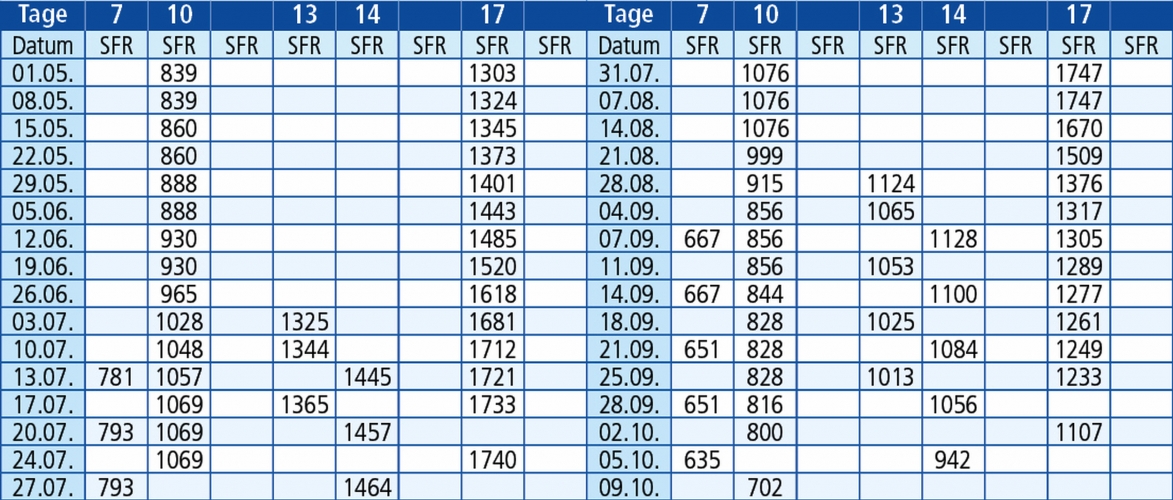 Hinfahrten: jeden Freitag 1.5. - 09.10.26