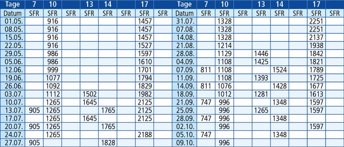 Hinfahrten: jeden Freitag 1.5. - 09.10.26