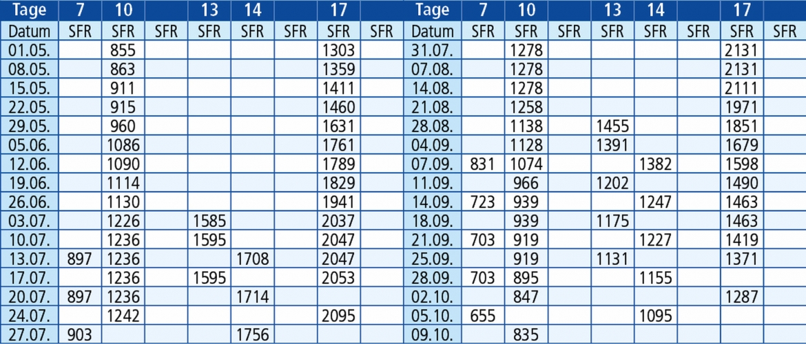 Hinfahrten: jeden Freitag 1.5. - 09.10.26