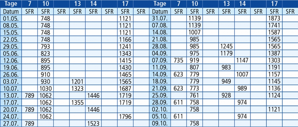 Hinfahrten: jeden Freitag 1.5. - 09.10.26
