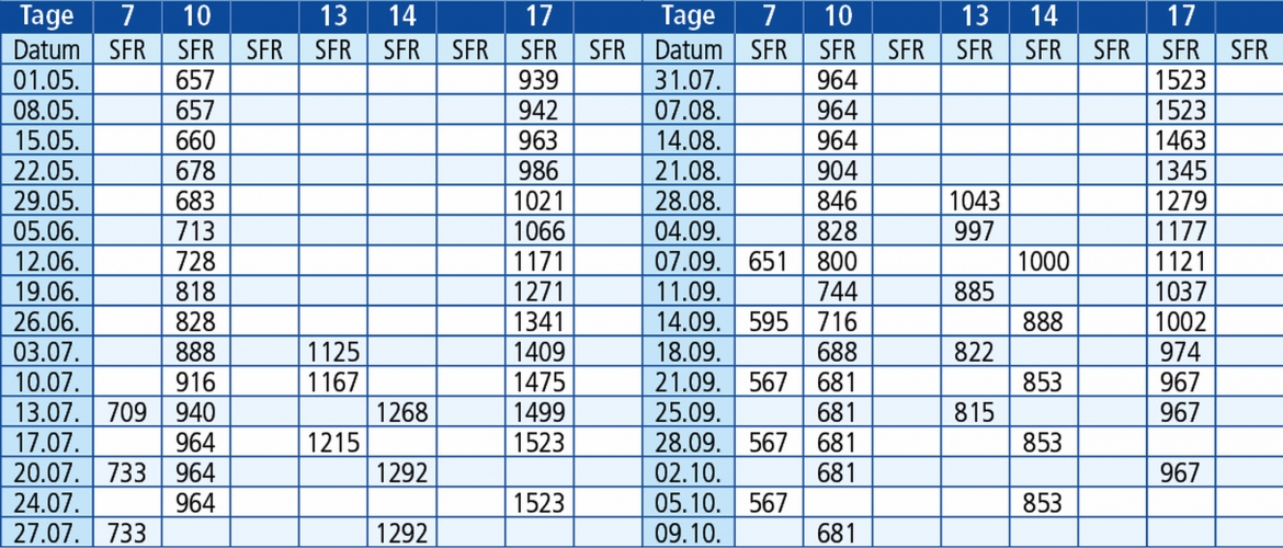 Hinfahrten: jeden Freitag 1.5. - 09.10.26