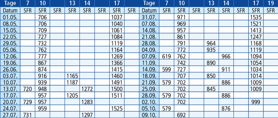 Hinfahrten: jeden Freitag 1.5. - 09.10.26