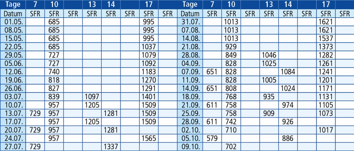 Hinfahrten: jeden Freitag 1.5. - 09.10.26