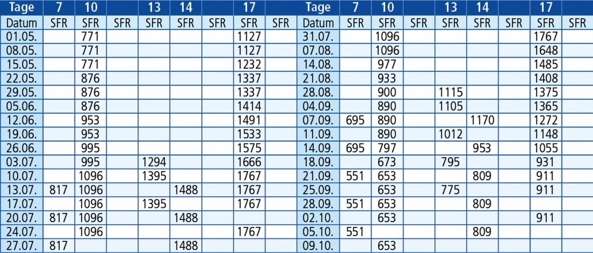 Hinfahrten: jeden Freitag 1.5. - 09.10.26