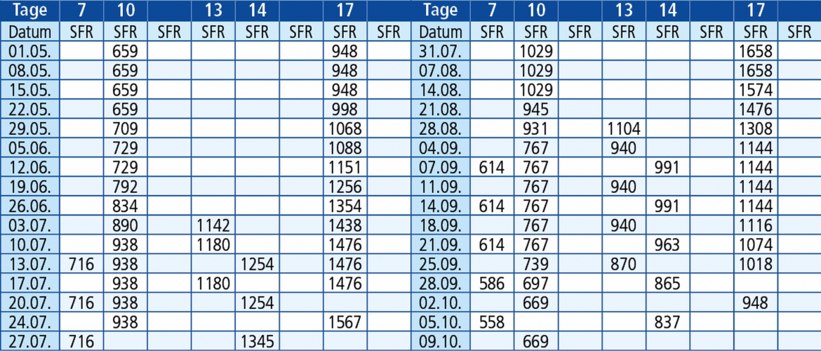 Hinfahrten: jeden Freitag 1.5. - 09.10.26