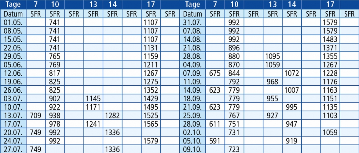 Hinfahrten: jeden Freitag 1.5. - 09.10.26
