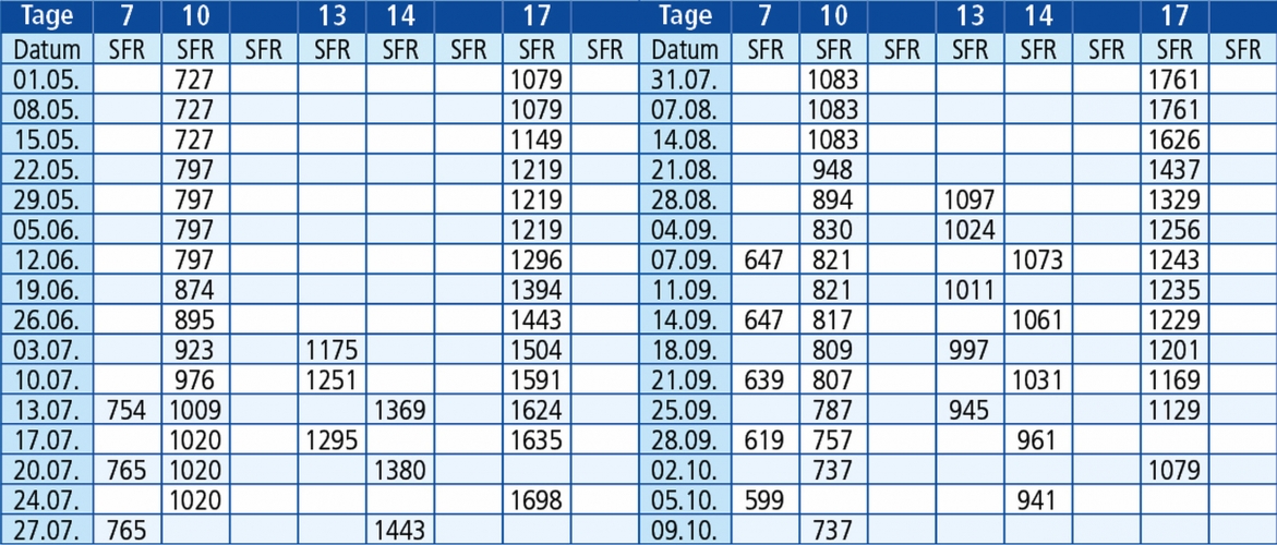 Hinfahrten: jeden Freitag 1.5. - 09.10.26