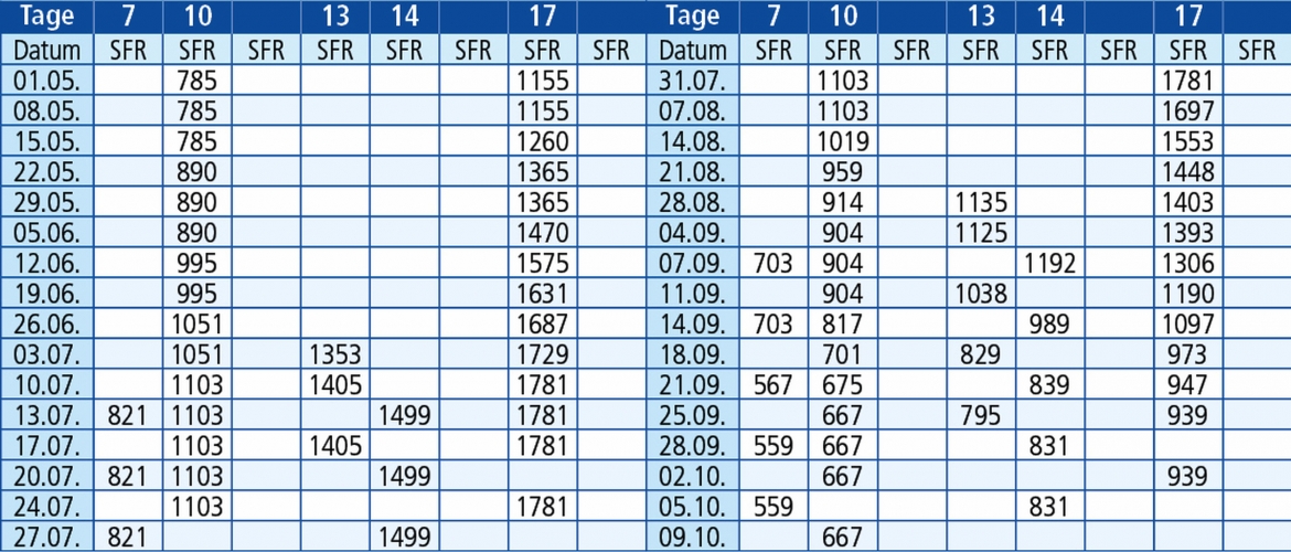 Hinfahrten: jeden Freitag 1.5. - 09.10.26