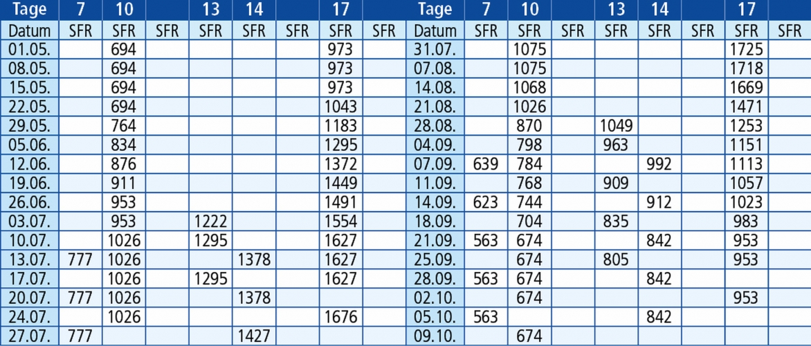 Hinfahrten: jeden Freitag 1.5. - 09.10.26
